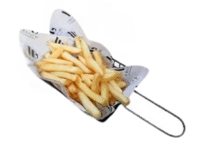Classic crispy fries made from fresh potatoes, lightly salted, and served with ketchup or mayo on the side.